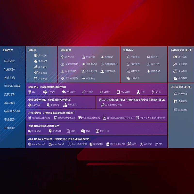 医疗器械产品上市前,,,要熟悉严格与繁复评审标准,,,整理分析监管机构指导文件中的海量信息。。。。企业急需一个智能化解决方案,,,,提升知识管理效率,,,,提高评审通过率,,,,以提升其市场竞争力。。。